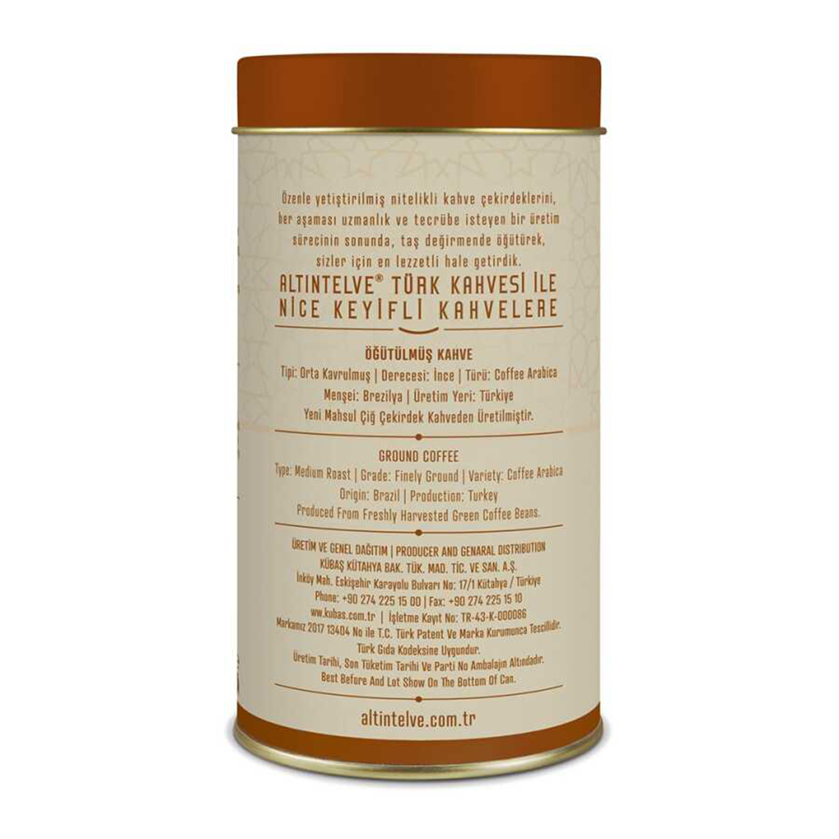 Altıntelve Öğütülmüş Türk Kahvesi Teneke 250 Gr